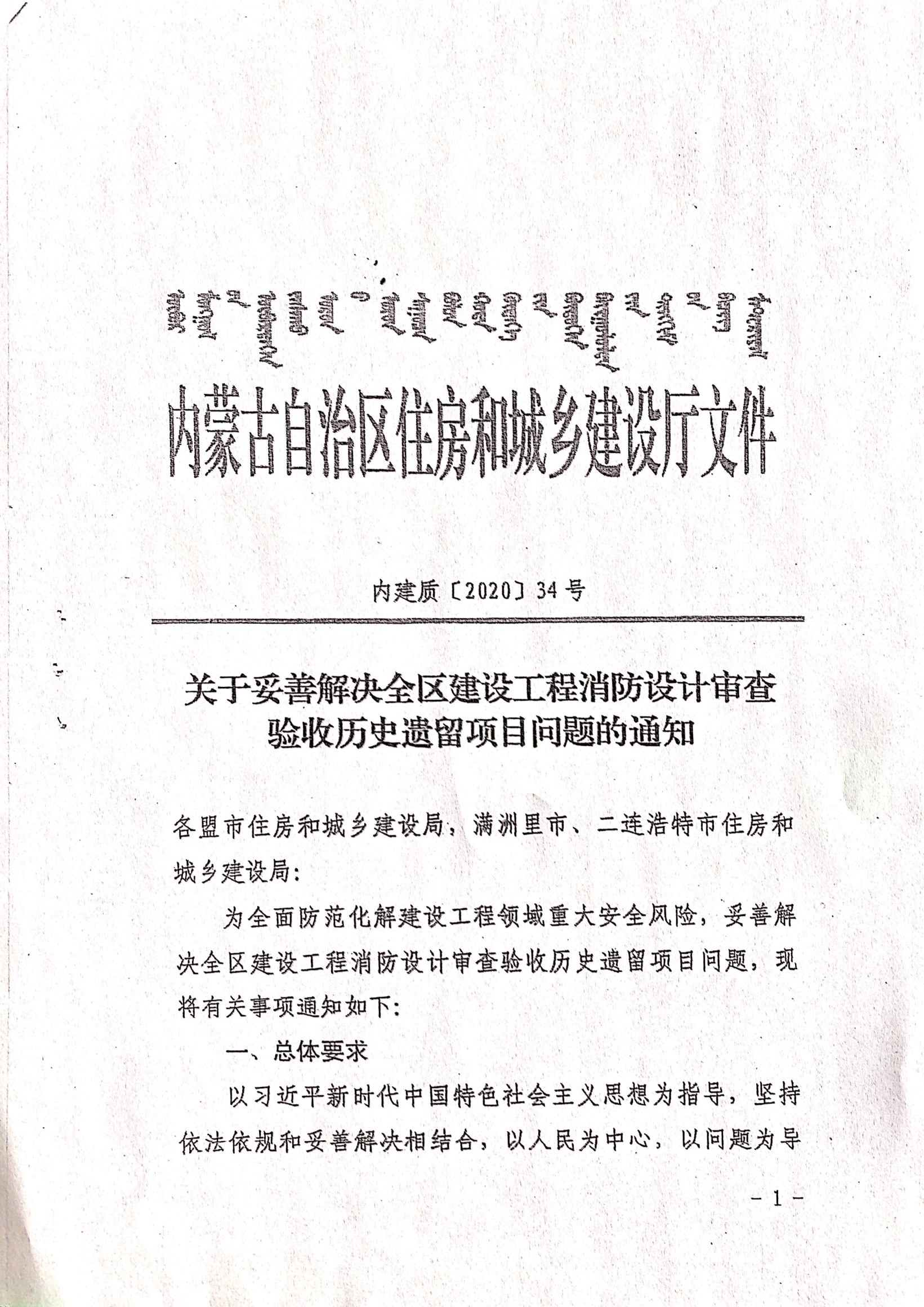 内建质〔2020〕34号 关于妥善解决全区建设工程消防设计审查验收历史遗留项目